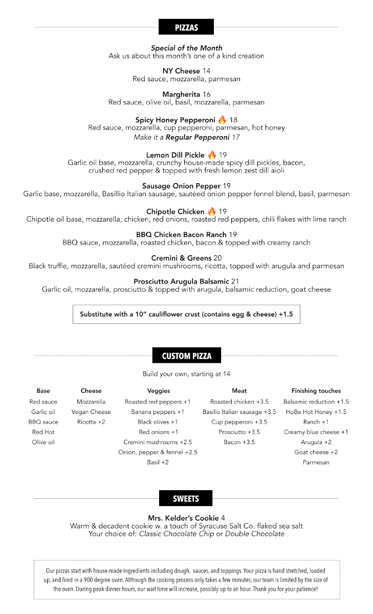 “ Love this place, Friday night staple for us. Price can be a little steep but it’s worth it in my opinion. If I had any notes it would be to bring back the prosciutto! (Please, it was so good!). The monthly specialty pizzas also rock. ”